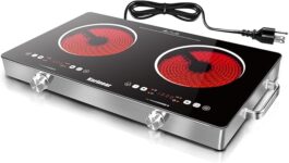 Karinear 2 Burner Electric Cooktop 110V, Portable Electric Stove with Handle