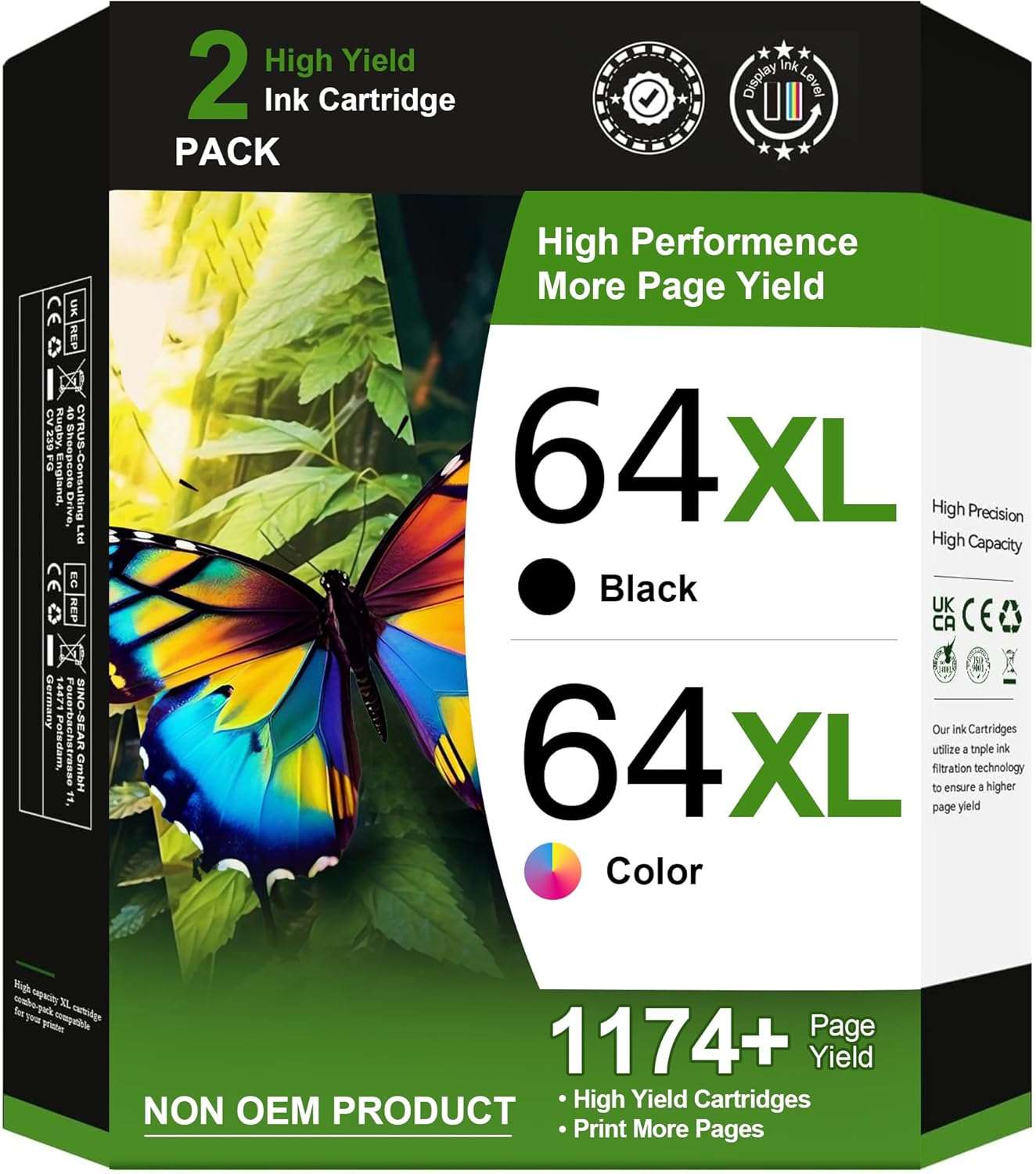 Adoccur 64XL Ink Cartridge Replacement for HP Ink 64 HP 64 Ink