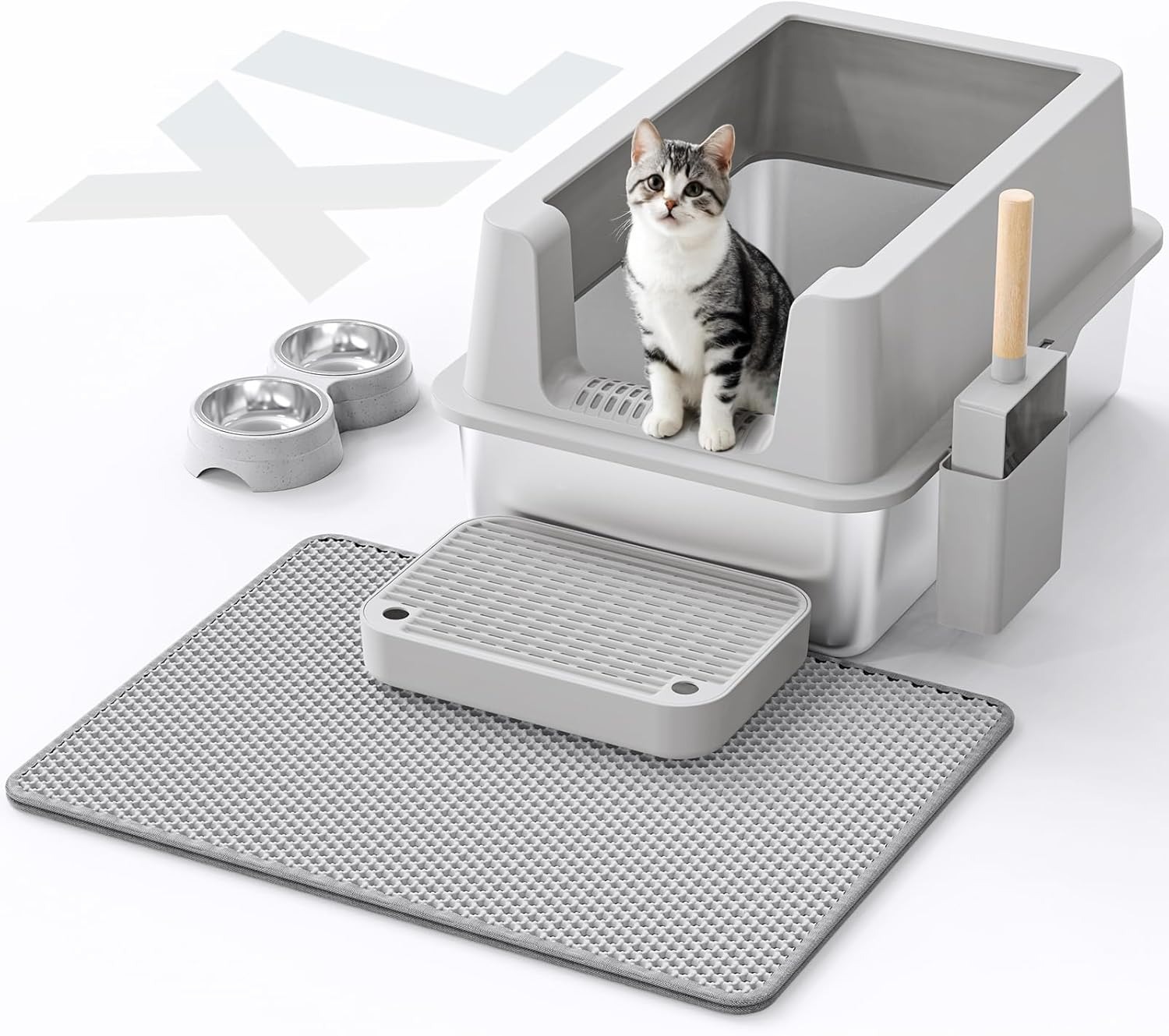 Grated top surface helps capture loose litter from paws, keeping floors cleaner.