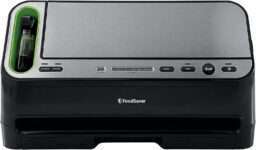 All-in-one vacuum sealer with built-in cutter for custom bags.
